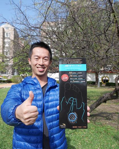 「JETFLOW碳纖維鞋墊」足心處突起,提供類似足底按摩的功能,並能將足弓撐起的設計~~。自從穿了「JETFLOW碳纖維鞋墊」一年多來,跑步機快走已很少出現小腿抽筋的現象,今年八月整整十天的日本自助旅遊,不用休息時間仍有腳力踏遍各地